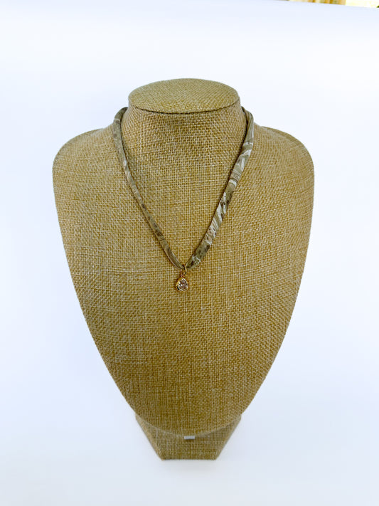 Sold outDark Green & Brown silk tie necklace