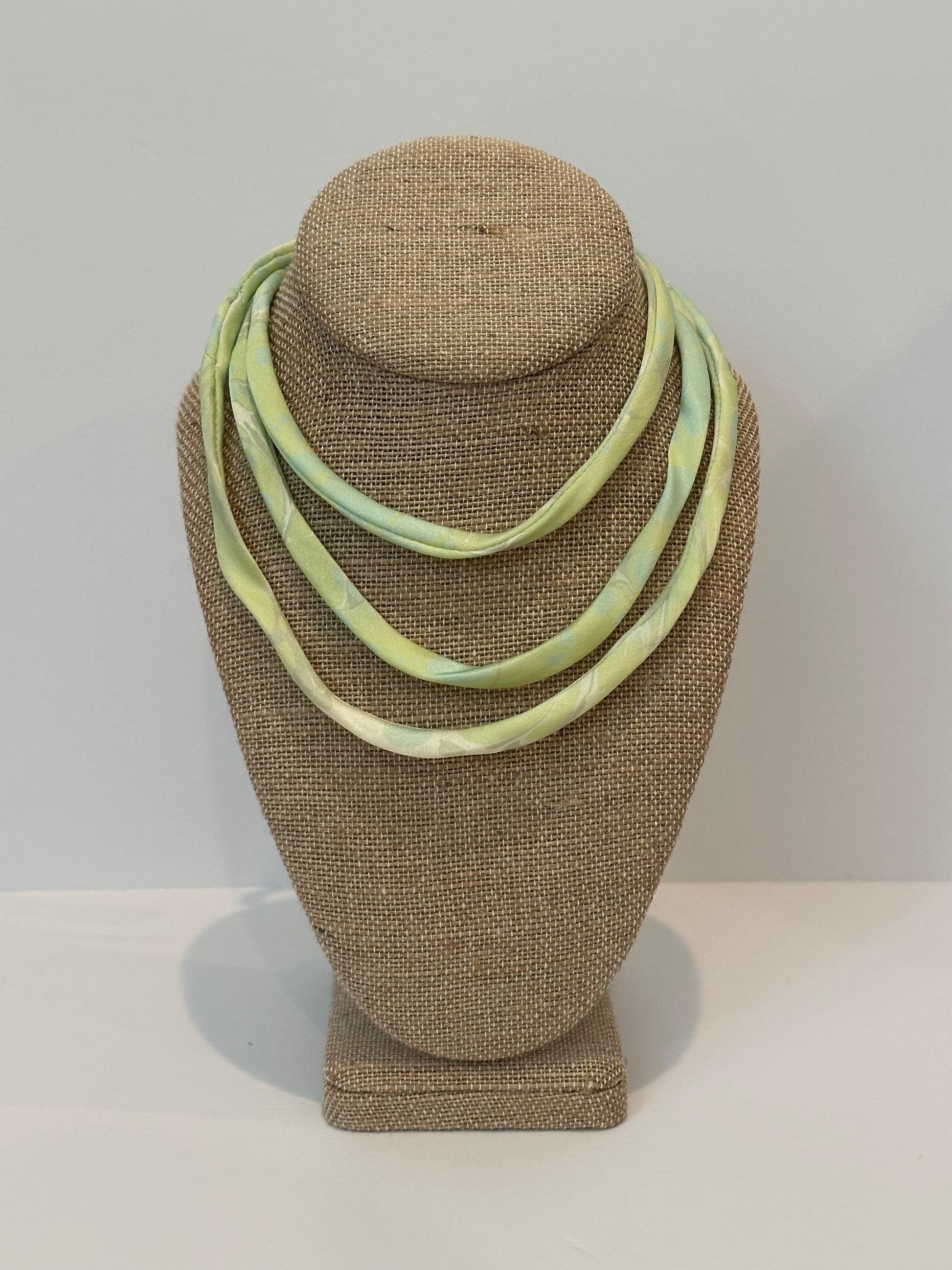 This design includes rich shades of lime green and blue. Wear it to add a pop of color to any outfit, layer it to your necklace stack, or let it shine on its own. The adjustable tie-back closure makes it easy to style at the length you love — long and layered or doubled up as a choker.